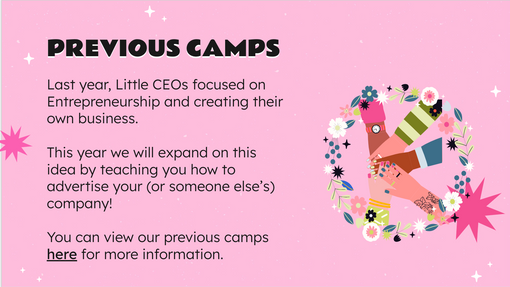 The Avionos Women’s Leadership Network partnered with Inigo to develop the theme for their Little CEOs camp in the summer of 2022. Little CEOs is a weeklong camp that helps young girls build entrepreneurial skills through mentorship and hands-on learning. The 2022 theme, Introduction to Advertising, guided campers as they created an advertising campaign for either a product they loved or a project they invented.